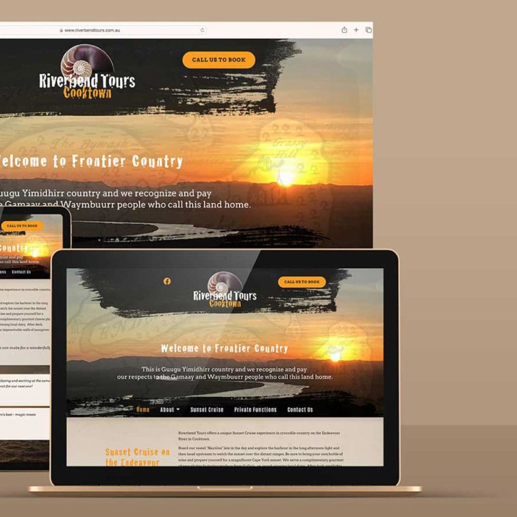 The design of the Riverbend Tours website combines a rich, immersive visual aesthetic with functional layout that highlights the unique experience of sunset river cruises in Australia’s far north. The palette features deep river‑greens and water‑blues paired with warm sunset oranges and muted timber‑brown accents—mirroring the natural environment of the Endeavour River and the mangrove‑lined shores. Large hero imagery and full‑width photos immediately evoke the atmosphere of the cruise, while clean typography and generous white space keep the content readable and accessible. Clear navigation and prominent calls‑to‑action allow visitors to book or explore tour options quickly, and the consistent visual identity across service pages maintains a cohesive look and feel that balances adventure with comfort and local authenticity.
